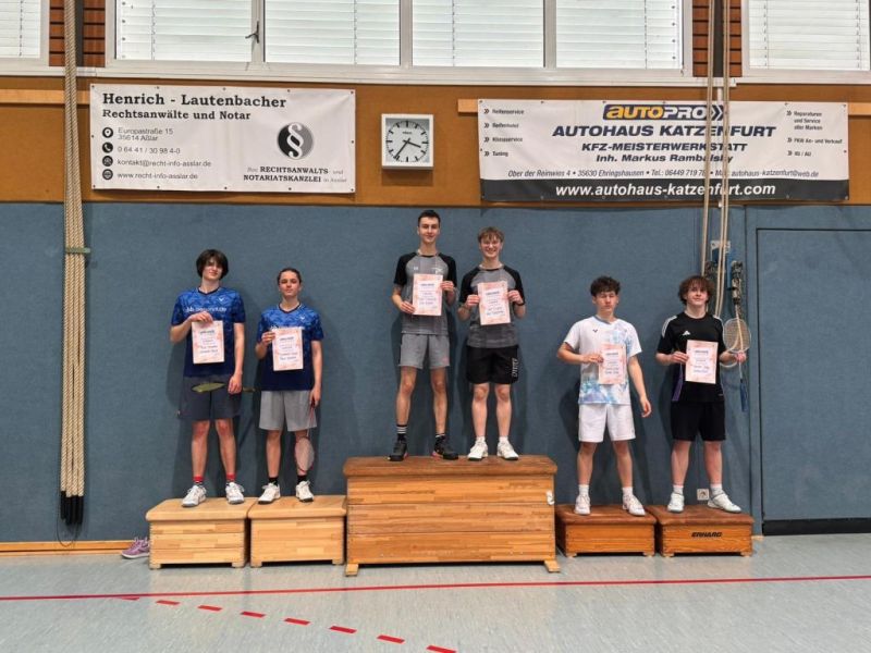 Beim Bezirksranglistenturnier für Schüler und Jugend, das am letzten Wochenende (18./19. April 2026) im Aßlarer Ortsteil Werdorf stattgefunden hatte, standen die Dillenburger Badmintonspieler zwei Mail auf dem Siegerpodest.